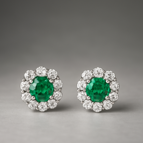 Luce la elegancia natural con estos pendientes en oro blanco con esmeraldas y diamantes.